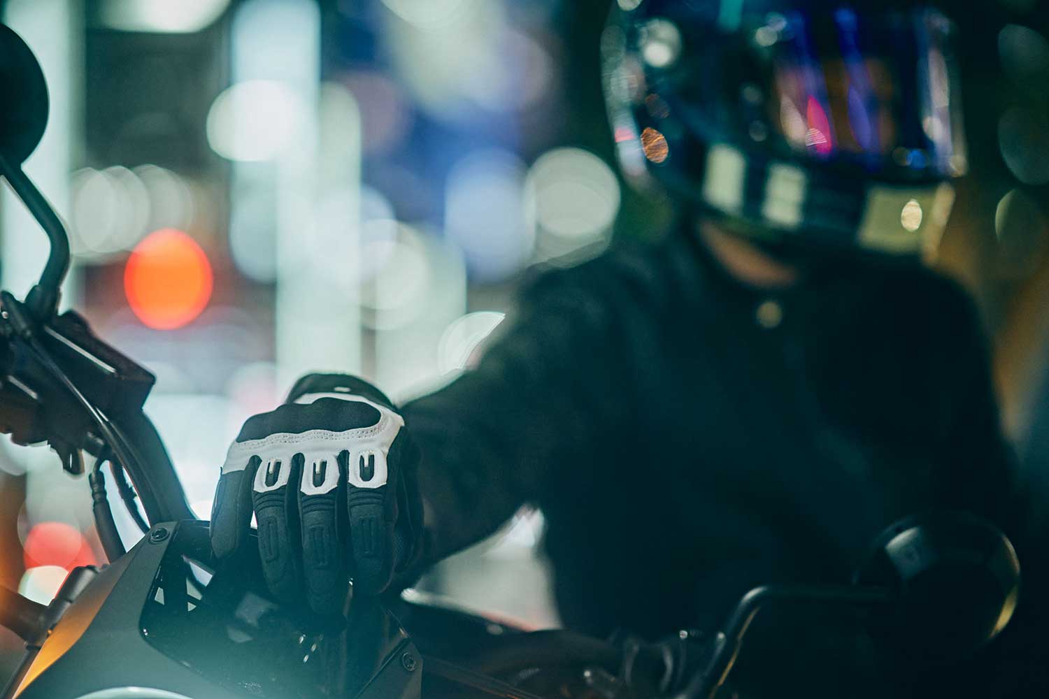 ideal初の本格的レイングローブ。見た目はシンプルでオーソドックスなスタイルですが、ストレッチ性のある防水・防風・透湿フィルム"skin fit"を使用した3レイヤー構造採用の高機能モデルです。ideal製品の特徴でもある「グリップを握り込んだ形状」を想定した設計により、ごわつきのなどの不快感を軽減し、快適な操作性を実現します。甲側にはインナータイプのハードプロテクターを装備し、掌側にもウレタンパッドを搭載。さらに、左手人差し指にはシールドについた水滴を拭うスクリーンワイパーを備え、雨天時にも良好な視界を確保します。