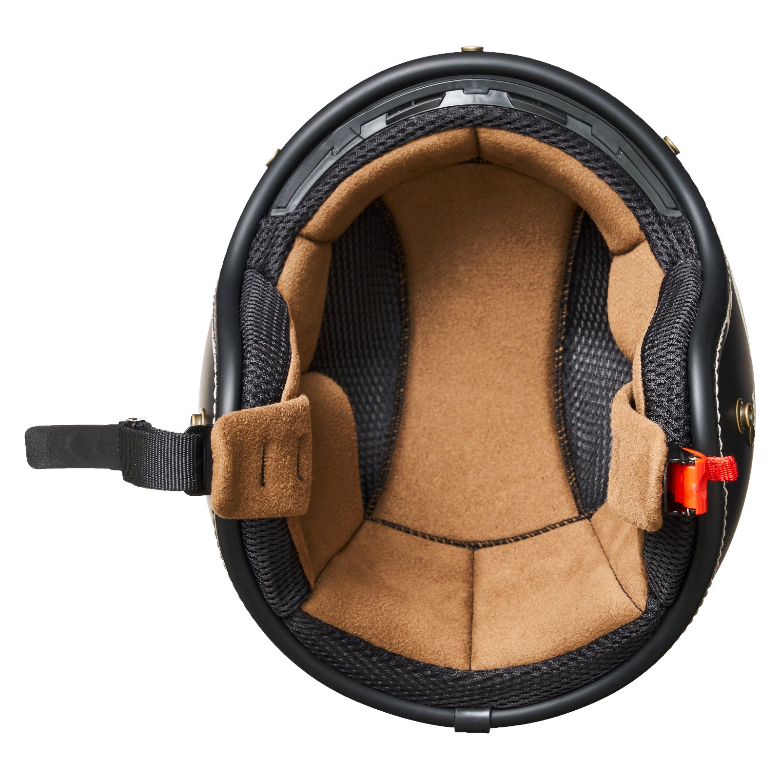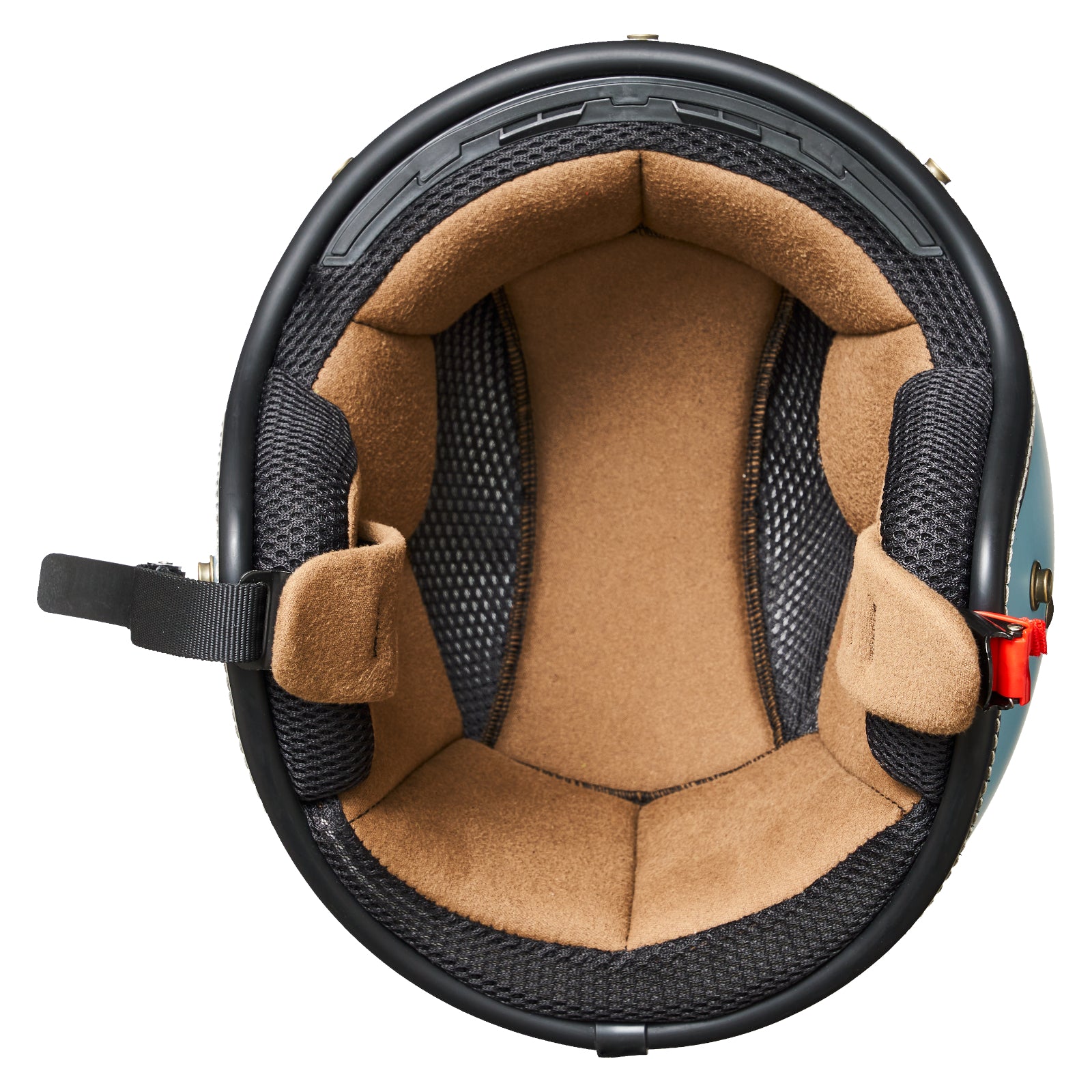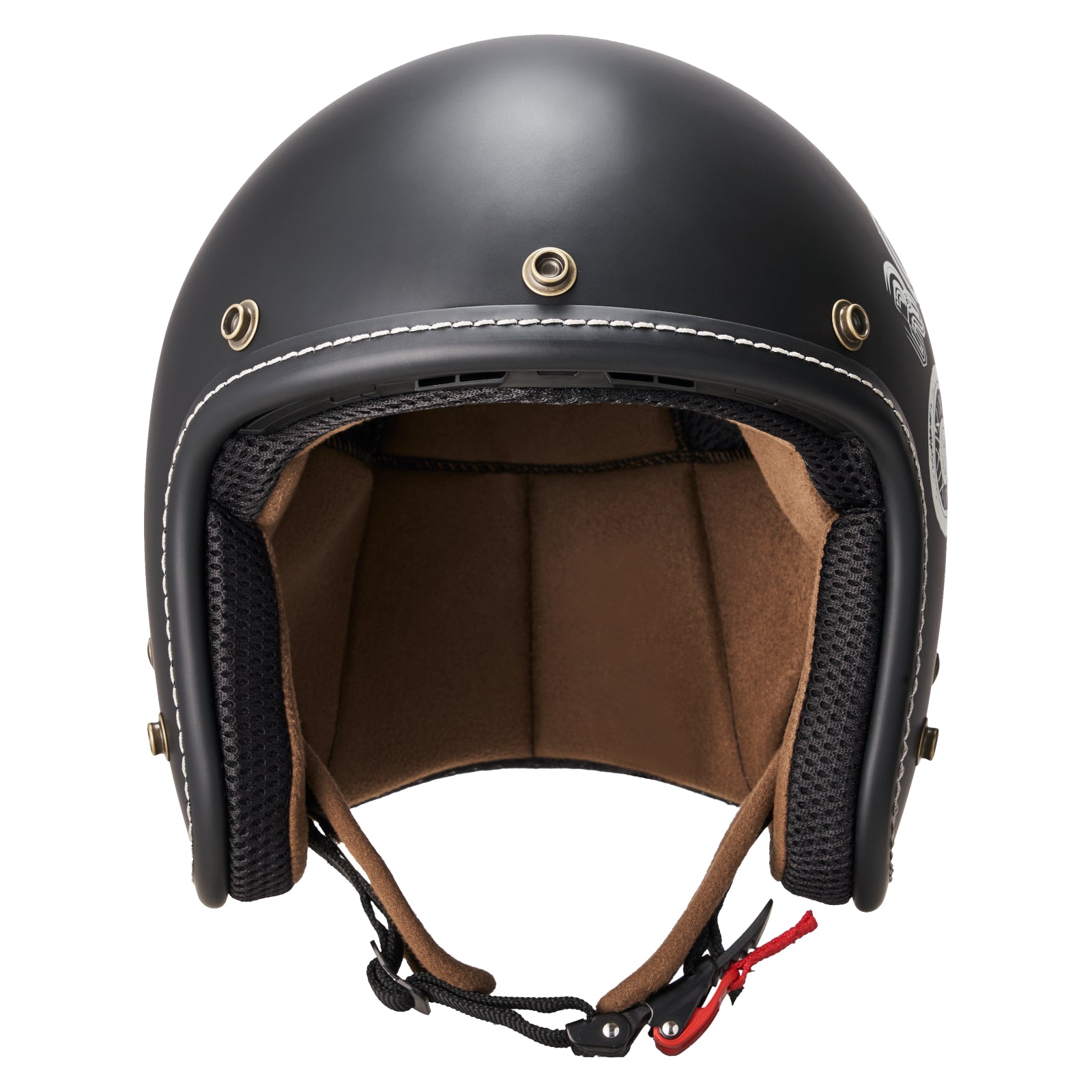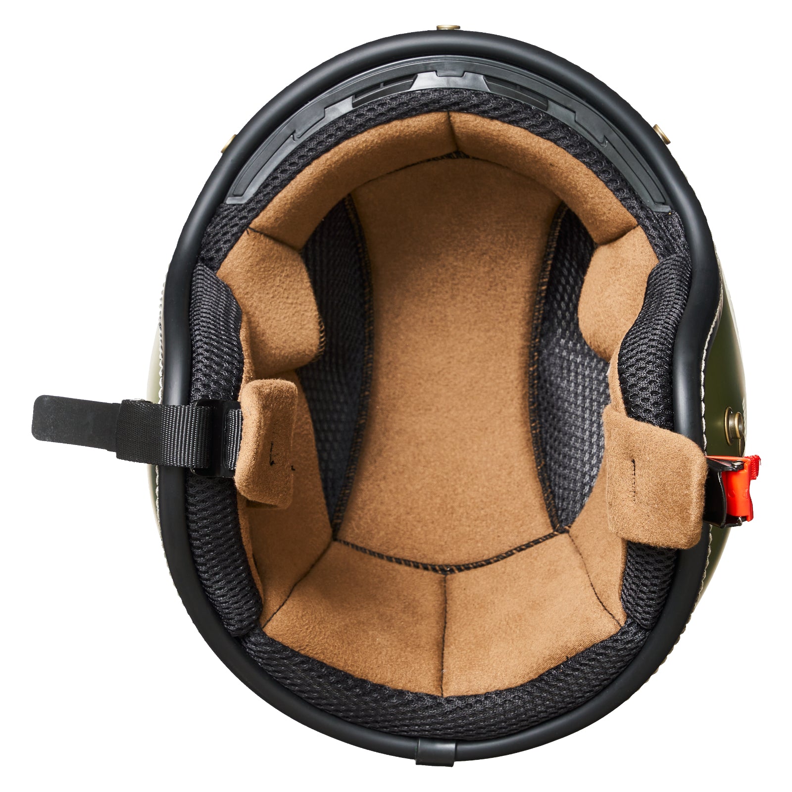 シンプルなスタイルながら、内装は着脱可能でお手入れも簡単。あご紐には使いやすいラチェット式バックルを採用しています。