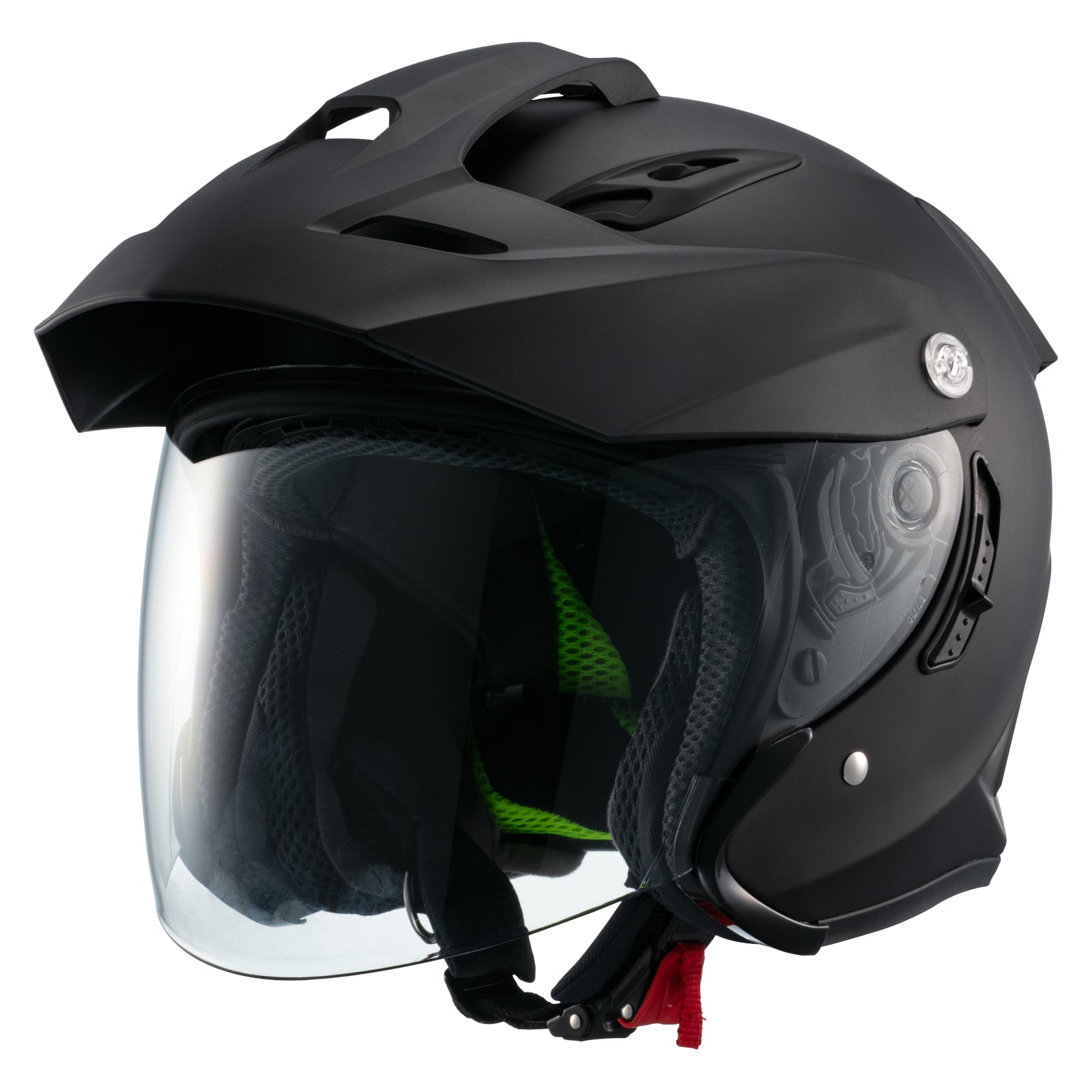 大型バイザーは前後約10mmの調整が可能で、直射日光のカットはもちろん、雨避けや飛石・虫よけとしても活躍します。眩しさを抑えるインナーサンバイザーも標準装備。