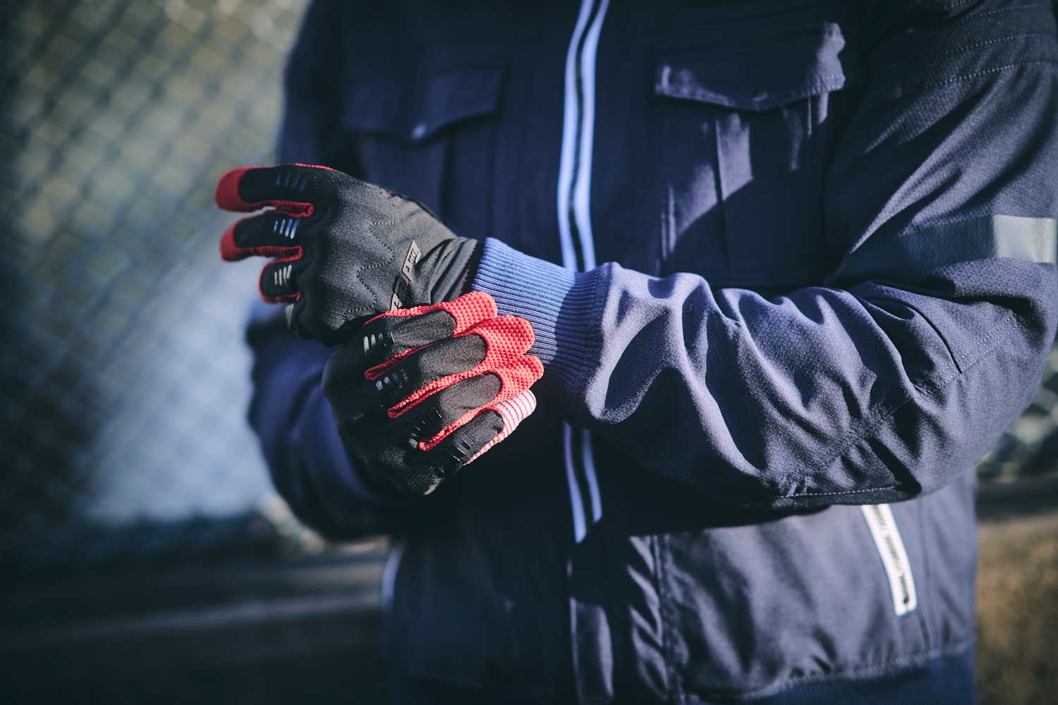手小指には側方からの視認性を高め、安全性を向上させる大型リフレクターを装備。