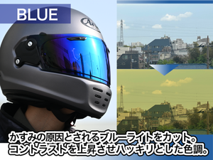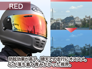 紫外線を99%カットする特殊な加工は、ミラーシールドにありがちな視界の歪みや内部反射を抑え、視界をクリアに保ちます。