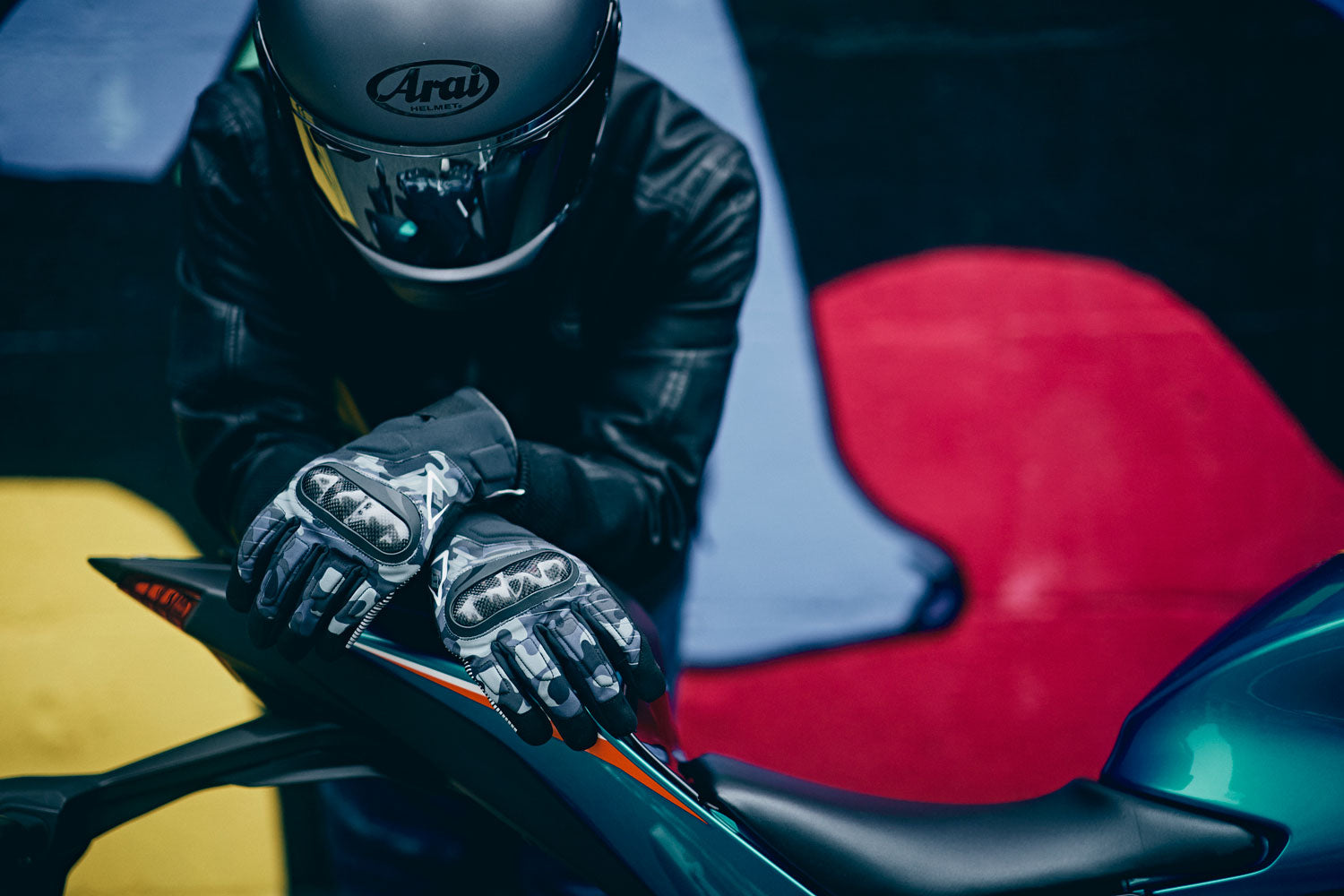 カーボンナックルプロテクターを採用し、安全性にも配慮。