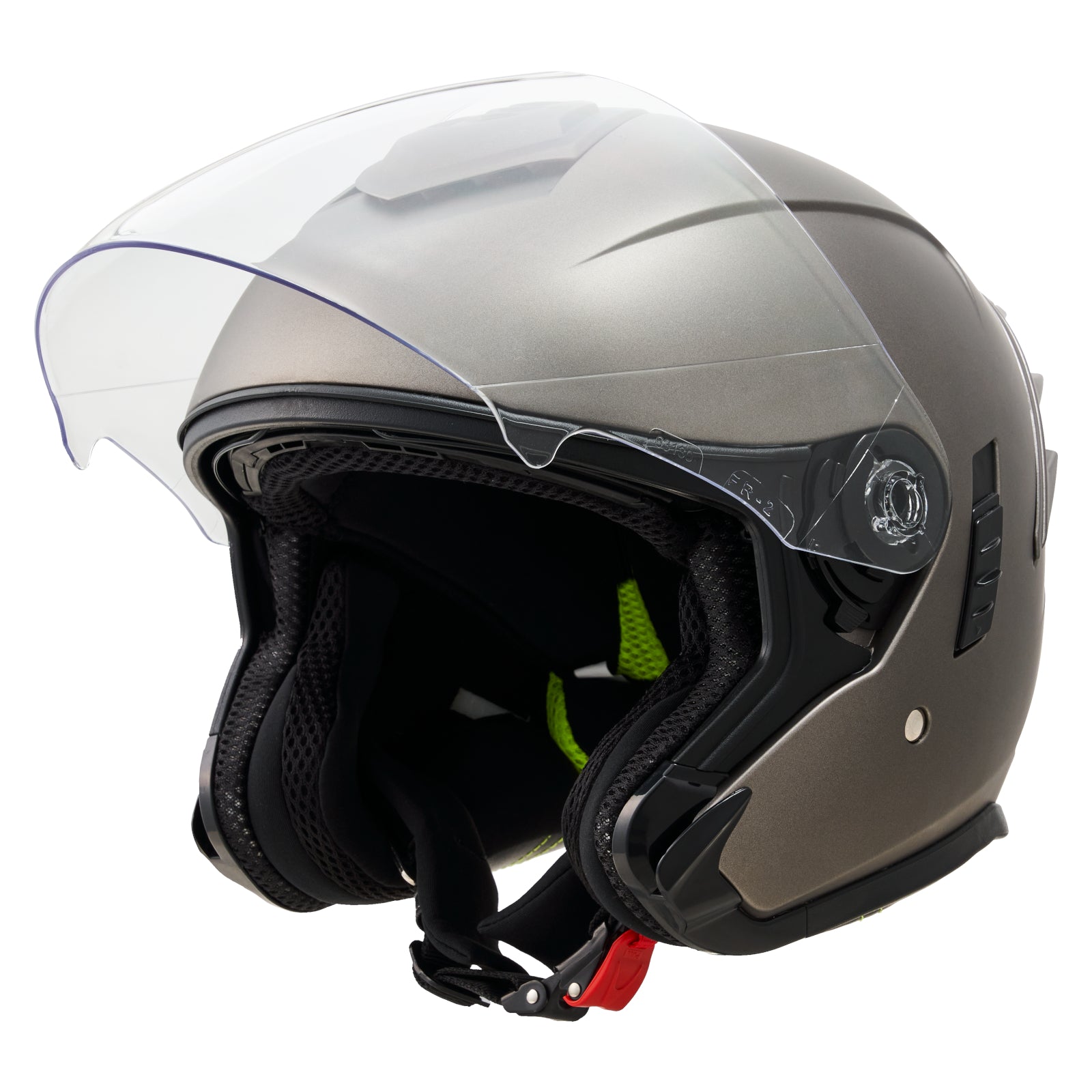 エッジの効いたエアロシェルデザインが生み出すシャープなシルエットが魅力のスポーティジェットヘルメット。リアに備えた大型スポイラーが高速走行時のブレを抑え、安定したライディングをサポートします。